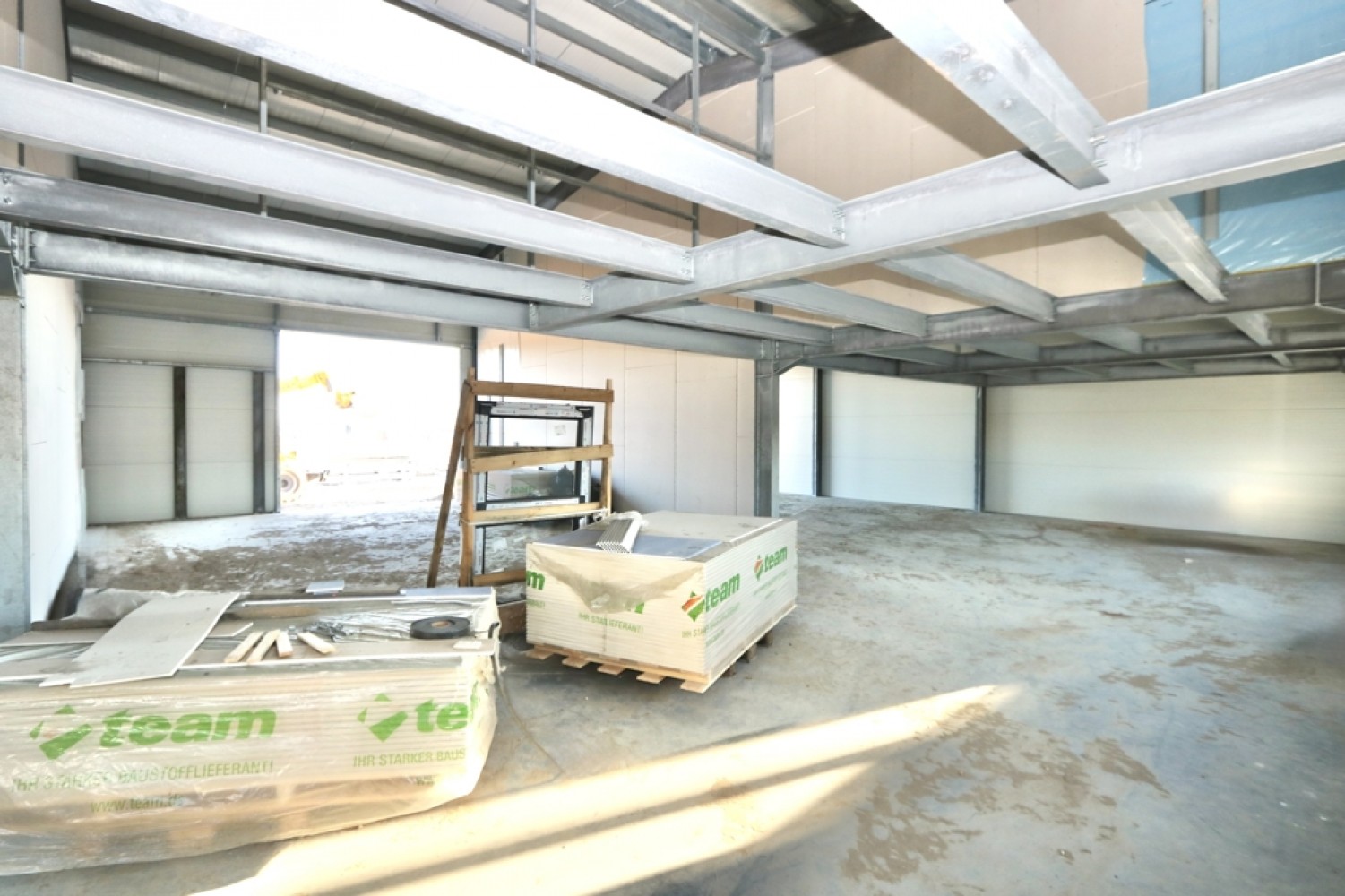 Der massive Boden aus Beton bildet die stabile Basis des Gebäudes und gewährleistet eine hohe Tragfähigkeit sowie eine dauerhafte Standfestigkeit.