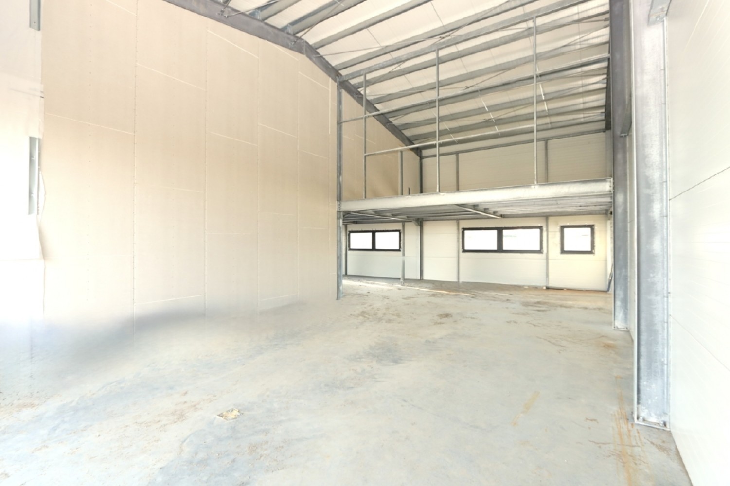 Jede Einheit ist in eine ca. 100 m² große Lager- und Produktionsfläche sowie eine ca. 40 m² umfassende Bürofläche aufgeteilt.