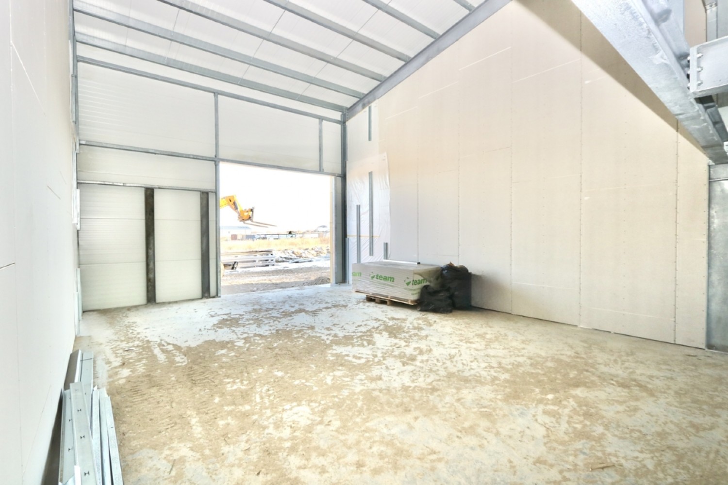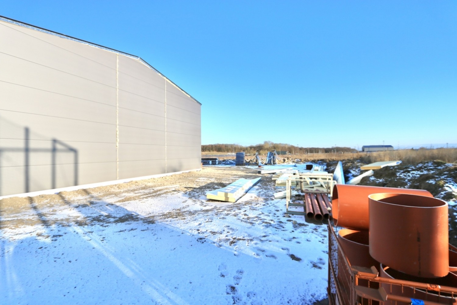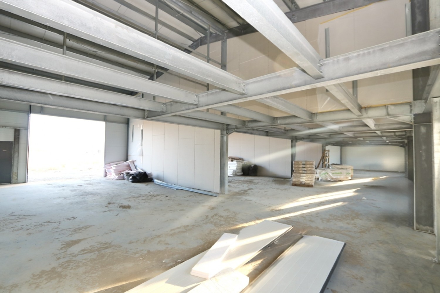 Die Außenhülle der Halle ist mit modernen Sandwichpaneelen aus Stahlblech mit integrierter Wärmedämmung ausgeführt. Diese Bauweise vereint eine hohe statische Belastbarkeit mit sehr guten wärmedämmenden Eigenschaften und trägt maßgeblich zu einem energieeffizienten Betrieb bei.