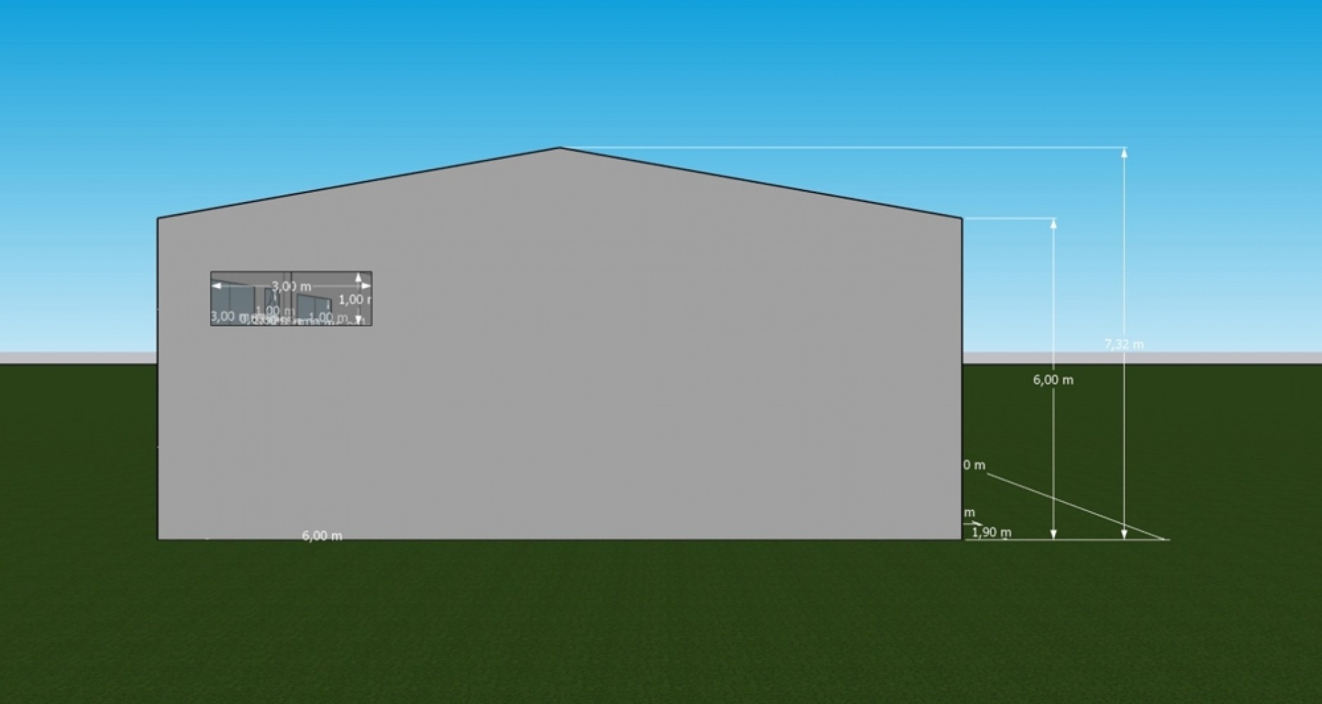 Die Halle verfügt über eine Traufhöhe von ca. 6,00 m sowie eine Firsthöhe von ca. 7,32 m, wodurch eine gute Raumausnutzung und flexible Gestaltungsmöglichkeiten für Maschinen, Regalsysteme oder Produktionsprozesse gewährleistet sind.