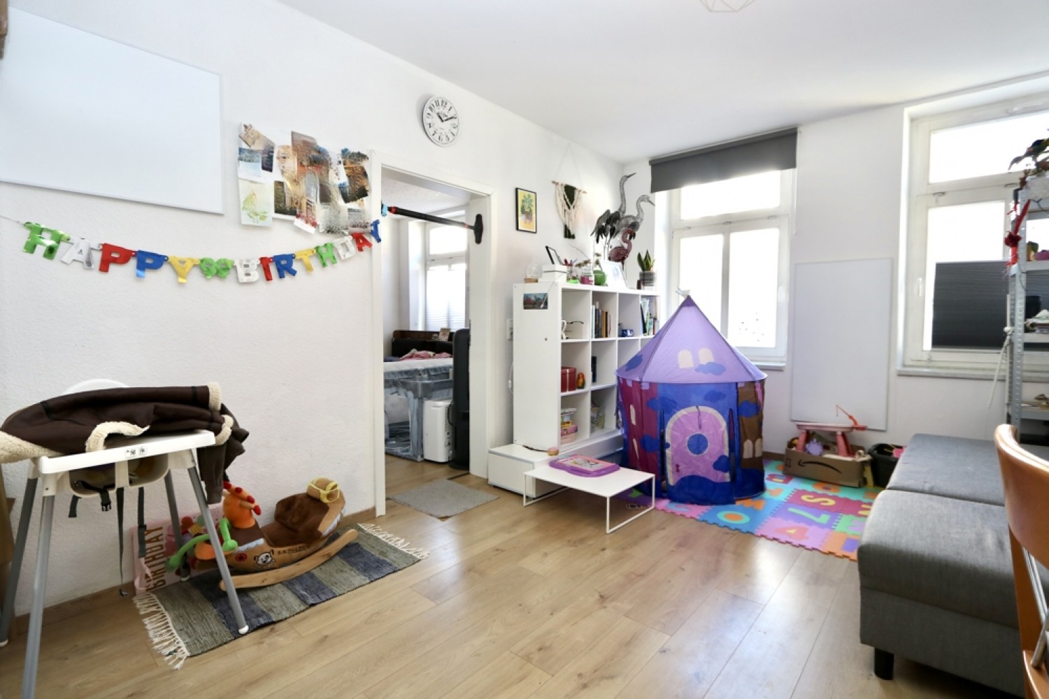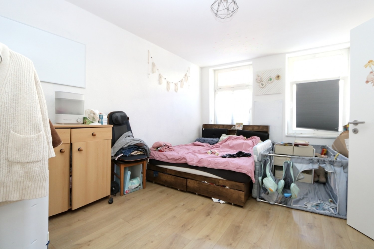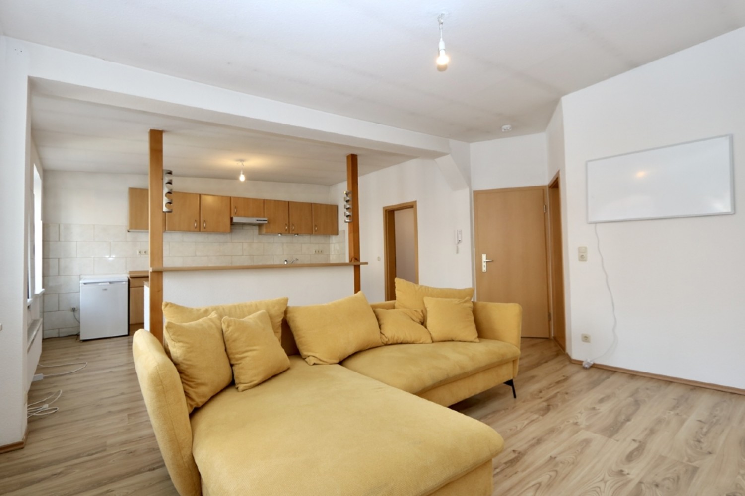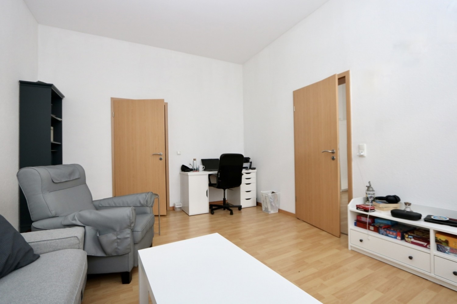 In den Wohn- und Schlafräumen der 3 Wohneinheiten wurden Laminatböden verlegt. Die Wände und Decken sind tapeziert und in einem hellen, neutralen Farbton gehalten.