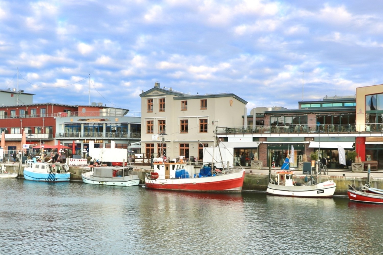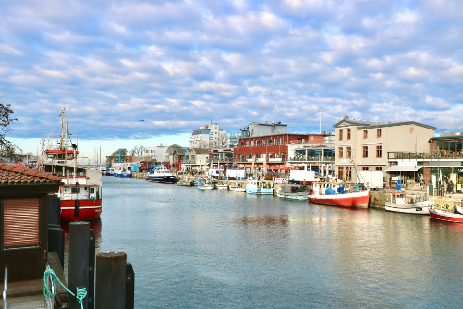 Rund um den Alten Strom prägen maritime Atmosphäre, kleine Fischkutter sowie eine Vielzahl an Restaurants, Cafés und individuellen Geschäften das Ortsbild.