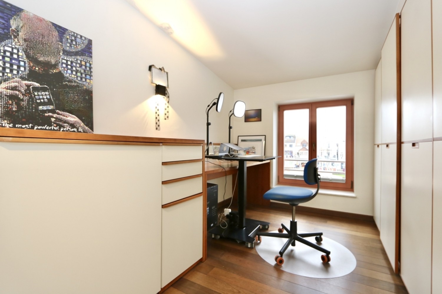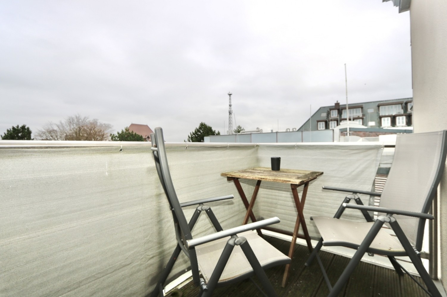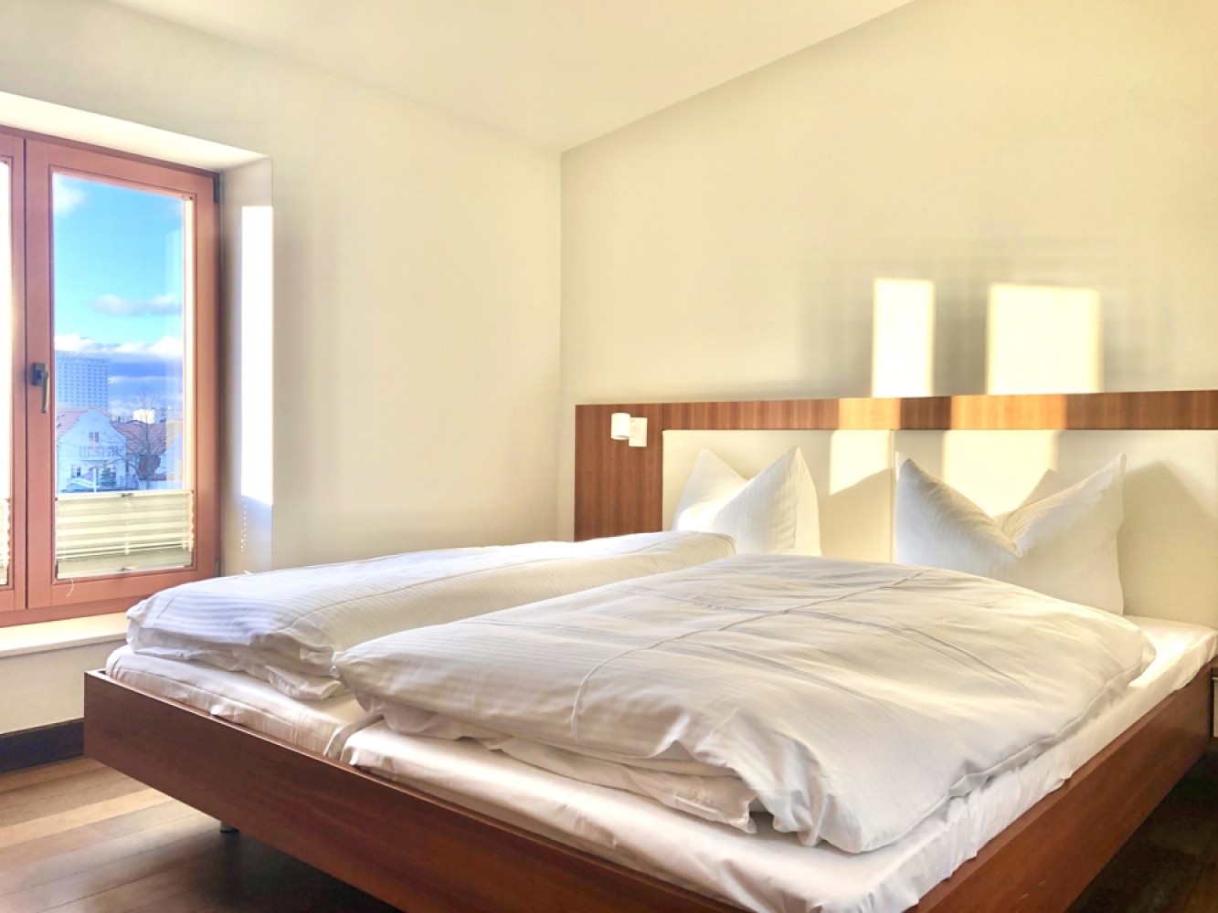 Die Fenster verfügen über eine wirkungsvolle Schalldämmung, sodass weder Geräusche aus der darunterliegenden Gaststätte noch von außen wahrnehmbar sind.
