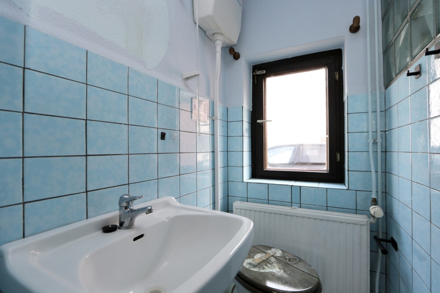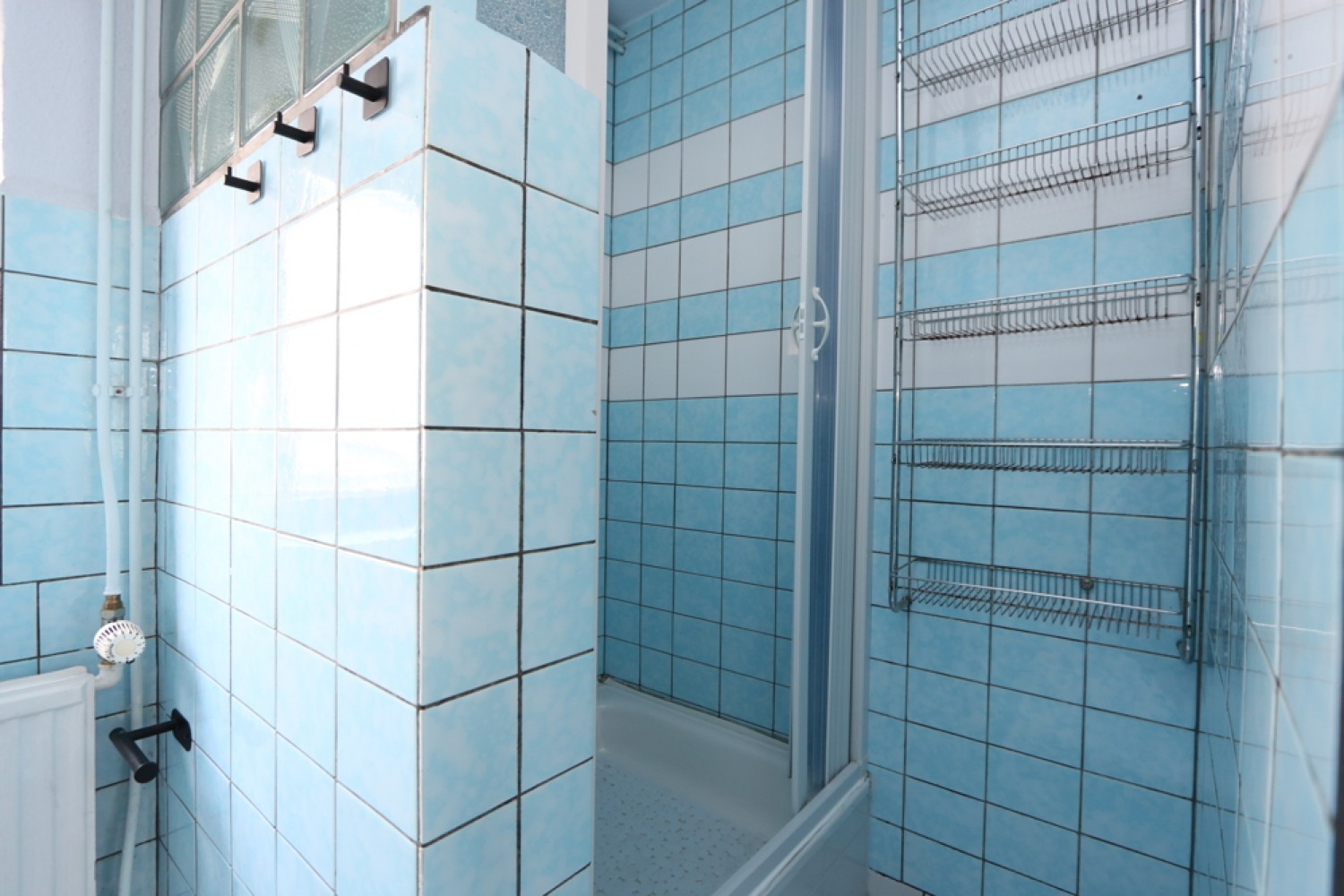 Das Badezimmer ist deckenhoch gefliest. Auf dem Grundstück befindet sich zudem eine Pumpe.