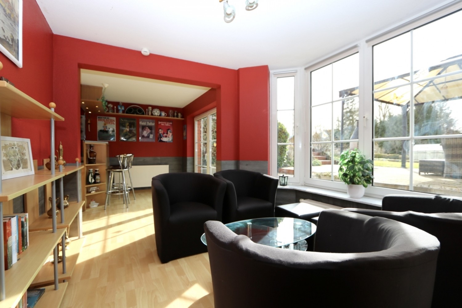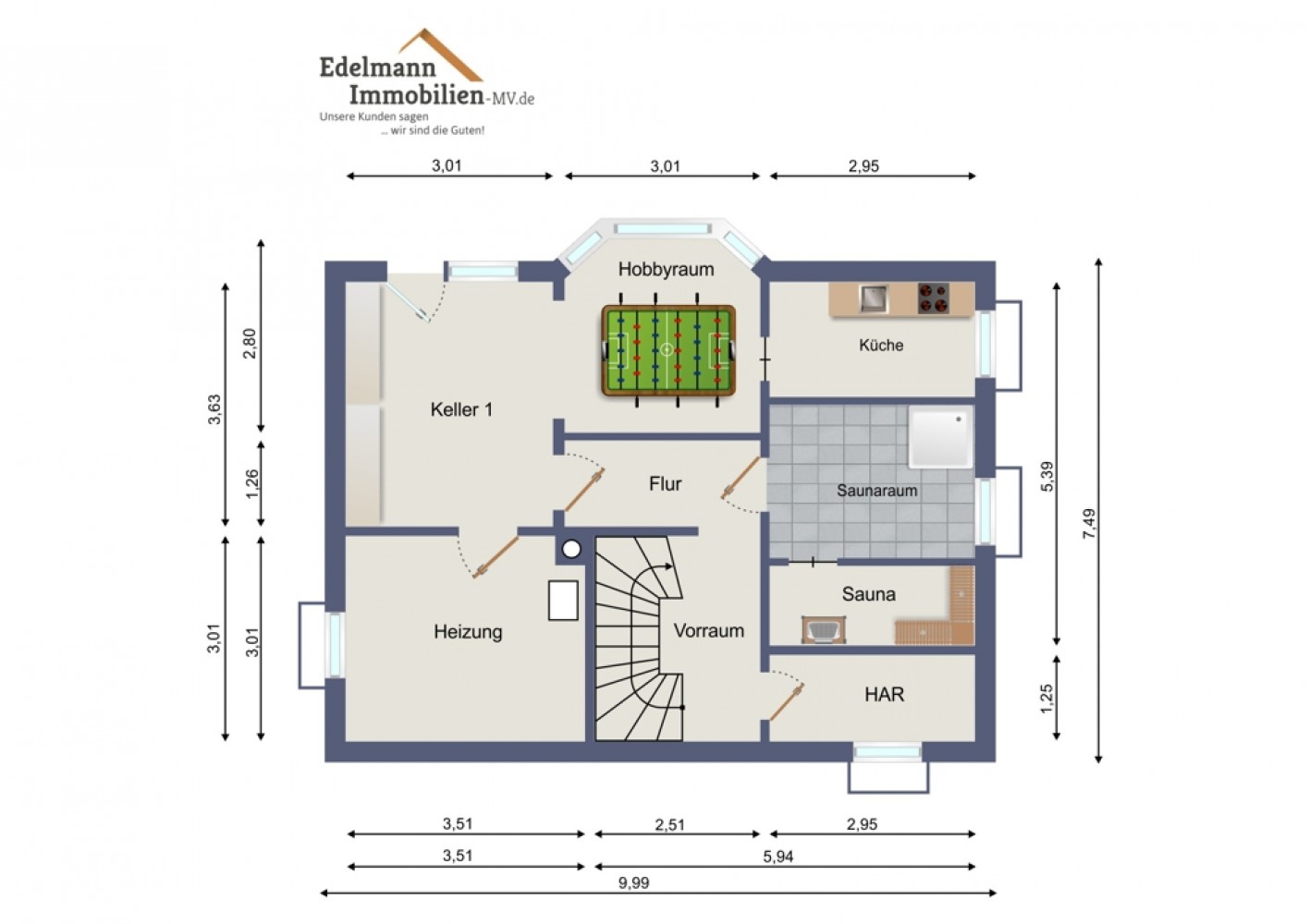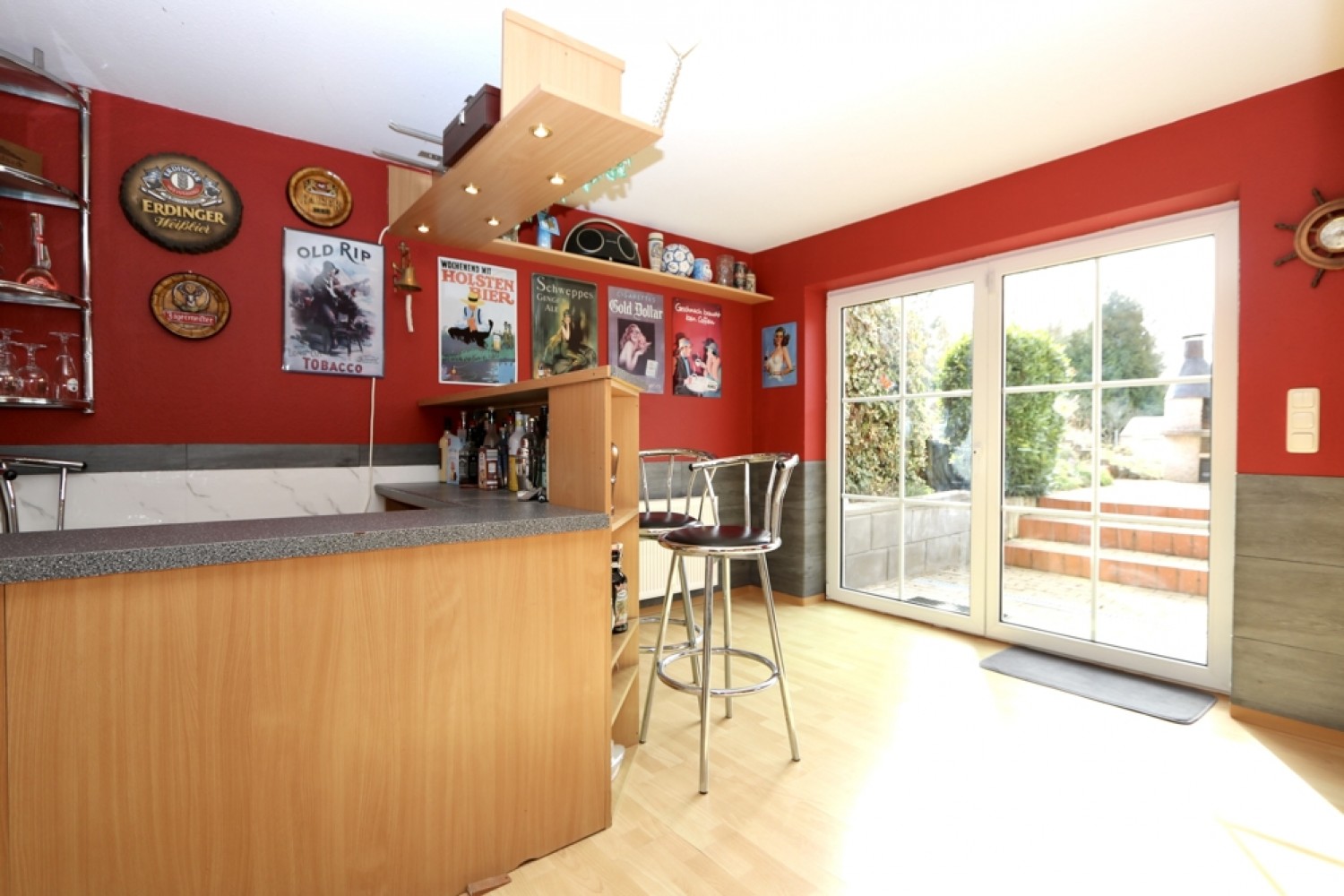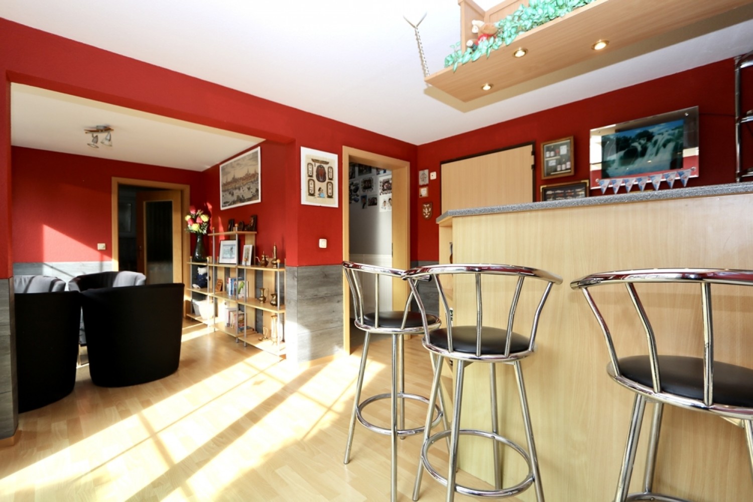 Ein besonderes Highlight ist das Souterrain als dritte Wohnebene. Hier stehen Ihnen ein Hobbyraum mit integrierter Bar, ein Waschraum sowie ein Saunabereich zur Verfügung. Perfekt für entspannte Stunden und individuelle Freizeitgestaltung.