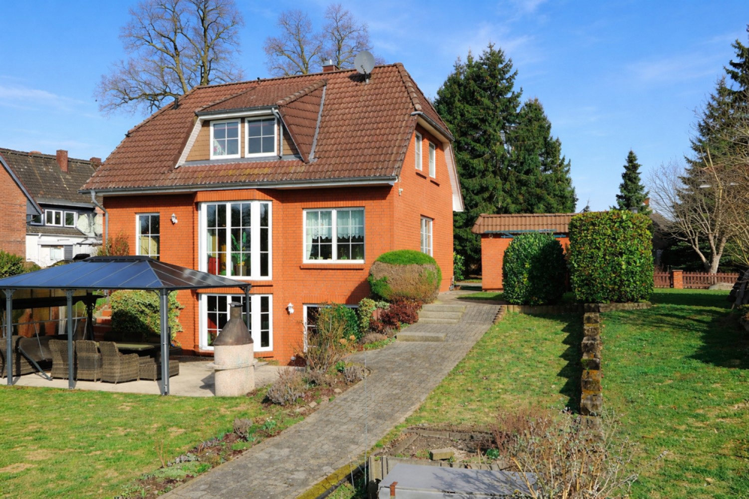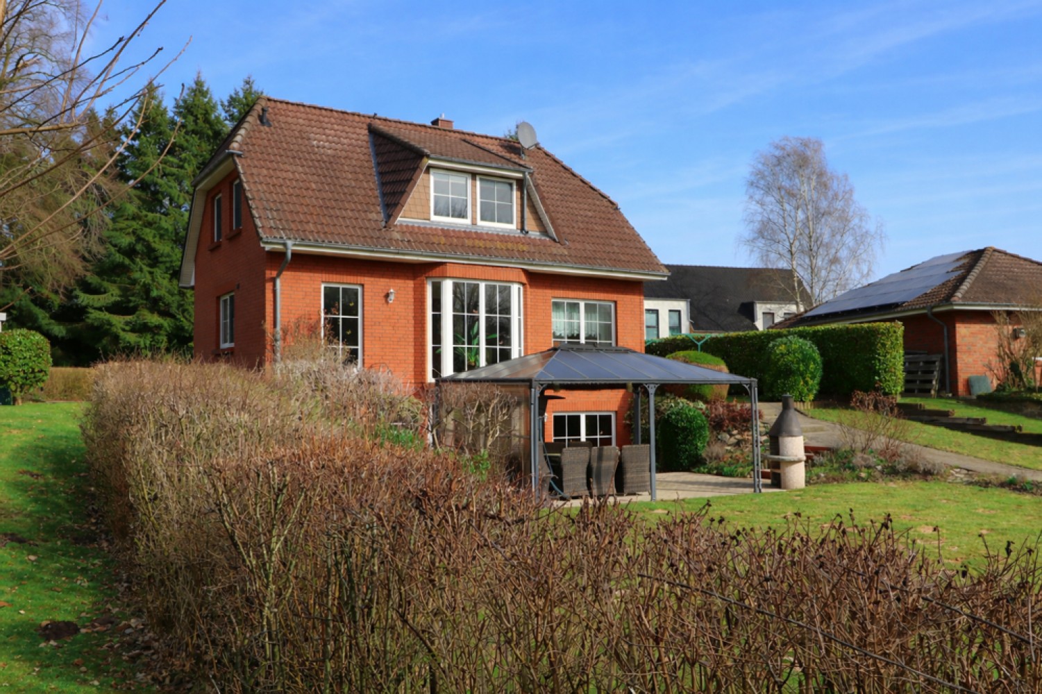 Das Einfamilienhaus wurde im Jahr 1998 in massiver Bauweise aus Kalksandstein errichtet. Das Krüppelwalmdach mit Gauben sowie die klassische Klinkerfassade verleihen der Immobilie einen zeitlosen und gepflegten Charakter.