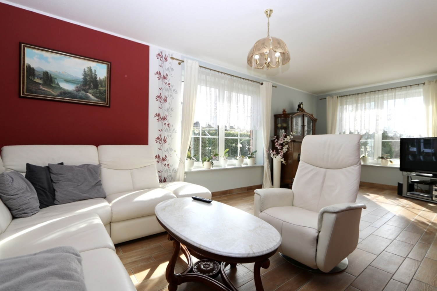 Die verbauten Kunststofffenster sind doppelt isolierverglast und mit innenliegenden Sprossen ausgestattet.