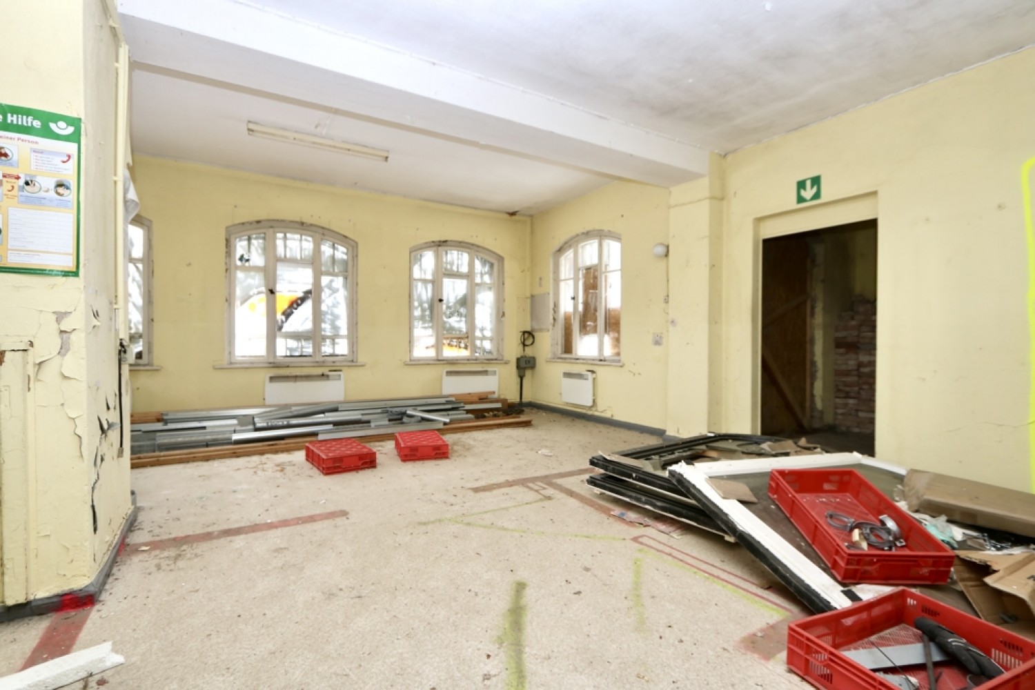 Die vorhandene Gebäudestruktur bietet großzügige Raumhöhen und eine großzügige Grundrissgestaltung.