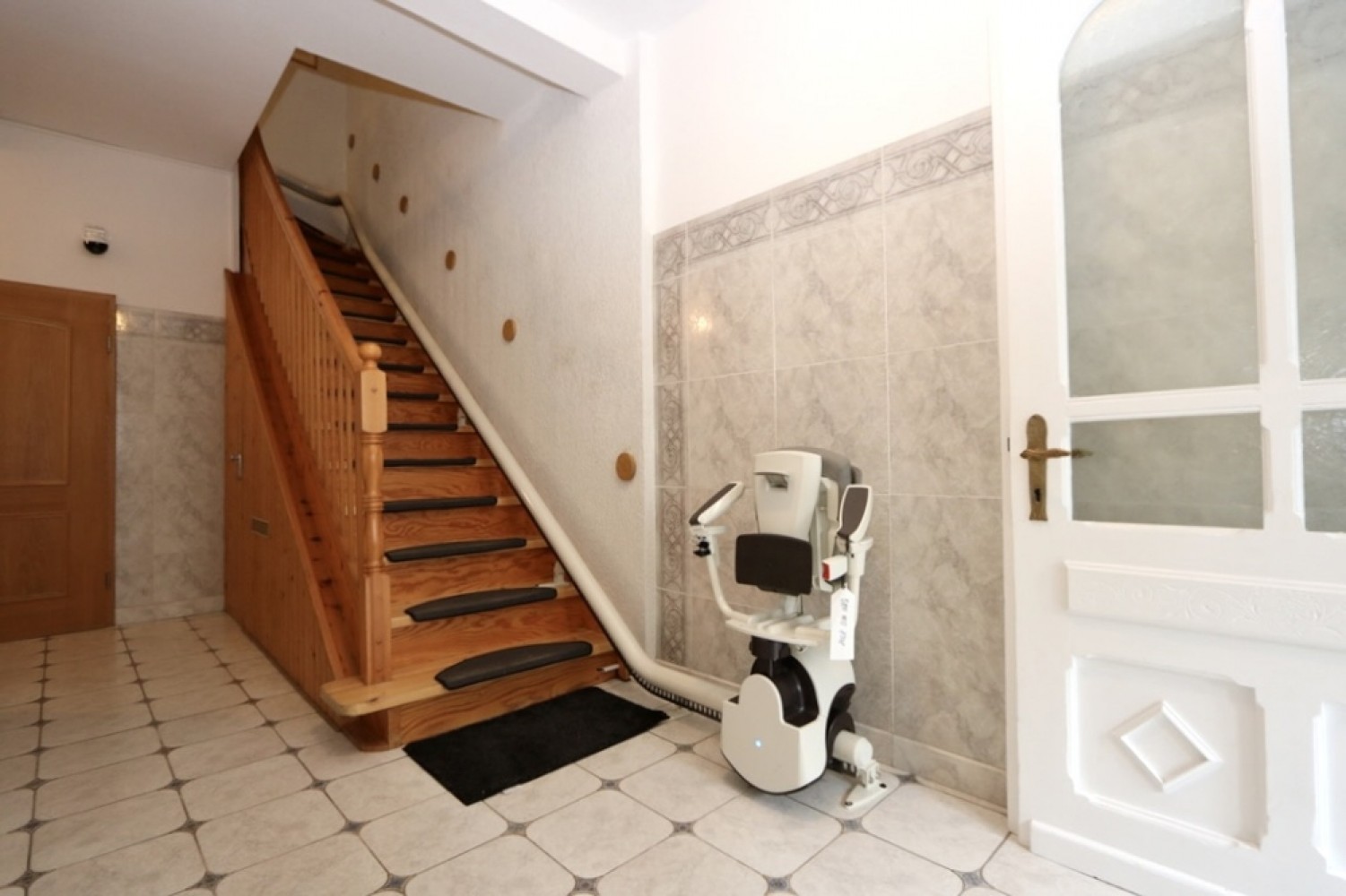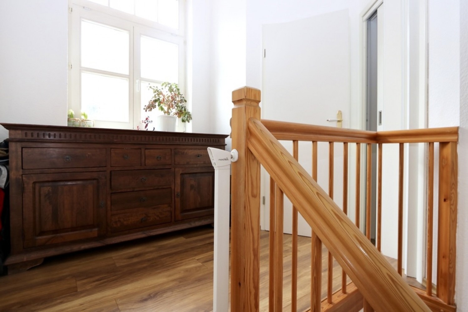 Im Treppenhaus ist der Fußboden praktischerweise mit Fliesen versehen.