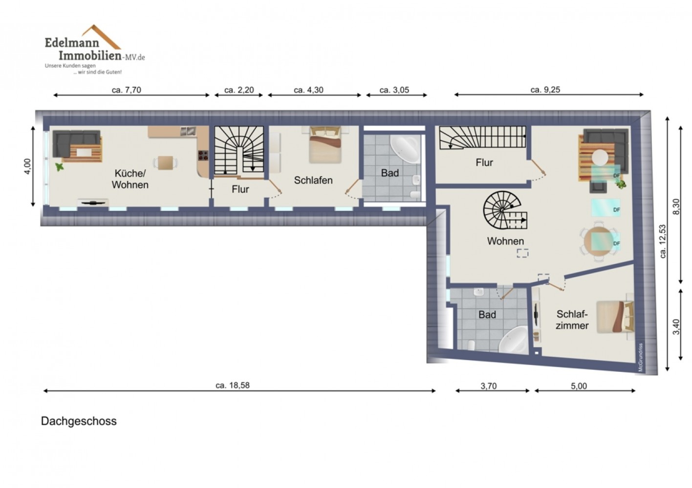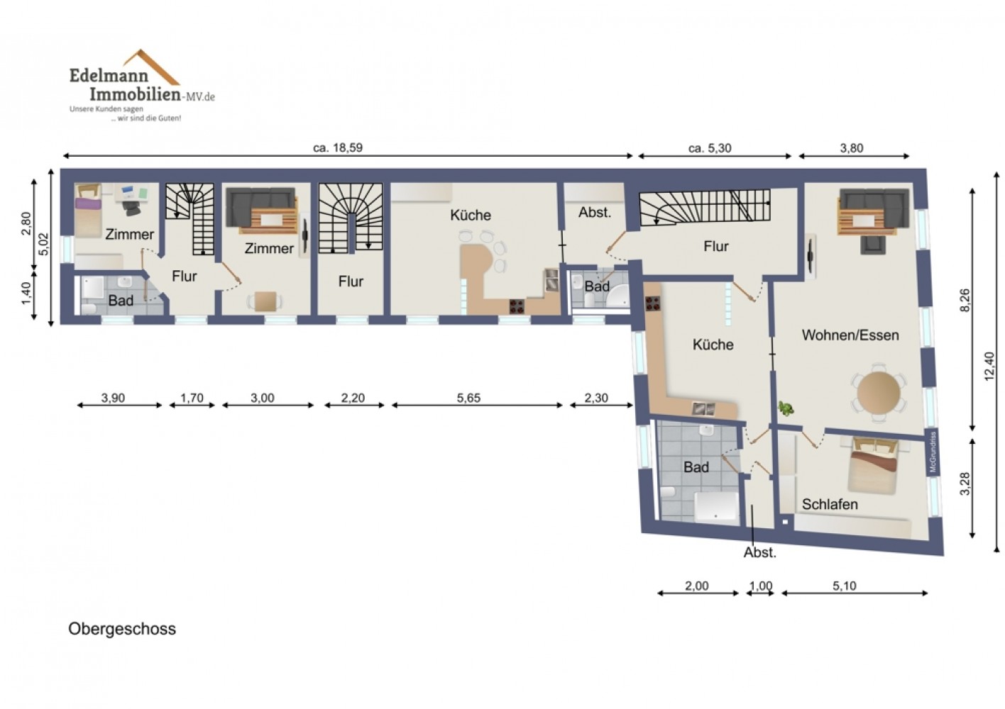 Aufgrund der Lage und die entsprechende Anpassung an die ortsübliche Vergleichsmiete kann zusammen eine Jahresnettokaltmiete von ca. 59.500 € und ein Faktor von bis zu 18,5 Jahren kurzfristig umgesetzt werden.