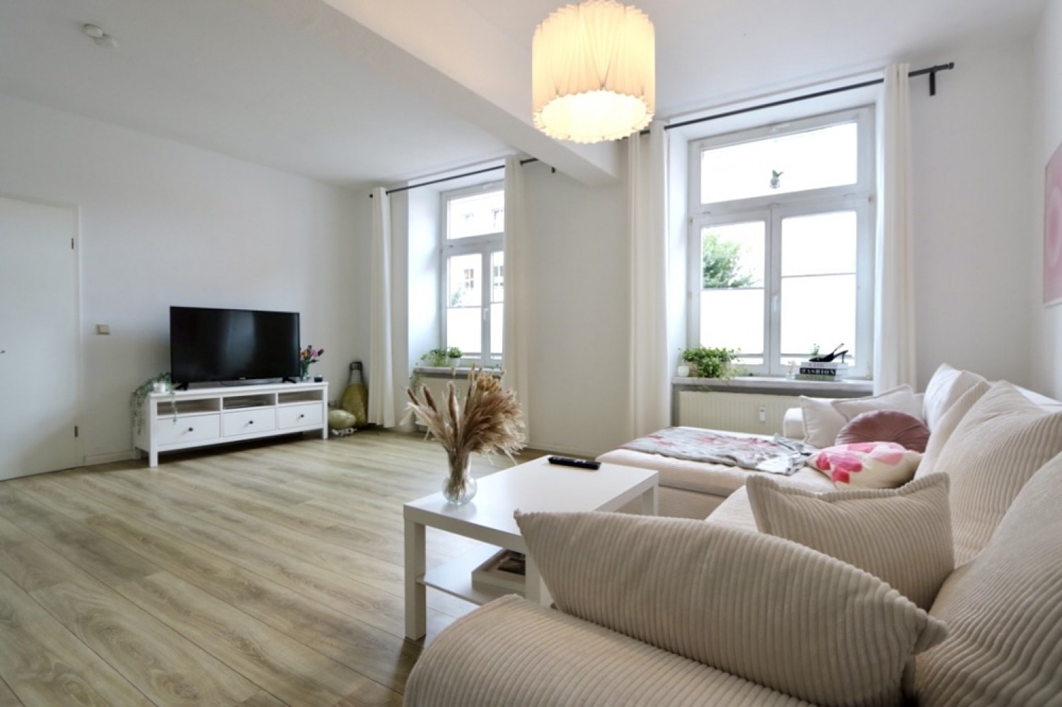 ca. 60 qm mit Laminat in den Wohnräumen, Fliesen in Küche & Bad und Raufasertapete