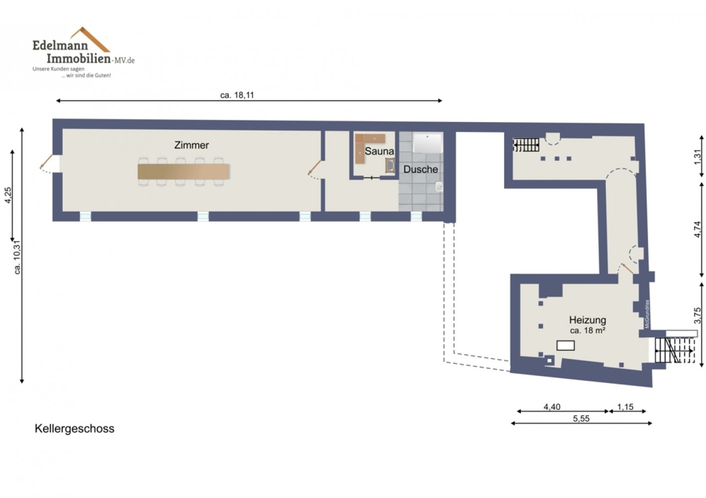 Der Gewölbekeller kann beim Eigentümerwechsel ebenfalls z.B. an einen Mieter oder Dritten vermietet werden. Die ca. 78 m² x 7,50 € würden monatlich 585 € ergeben.