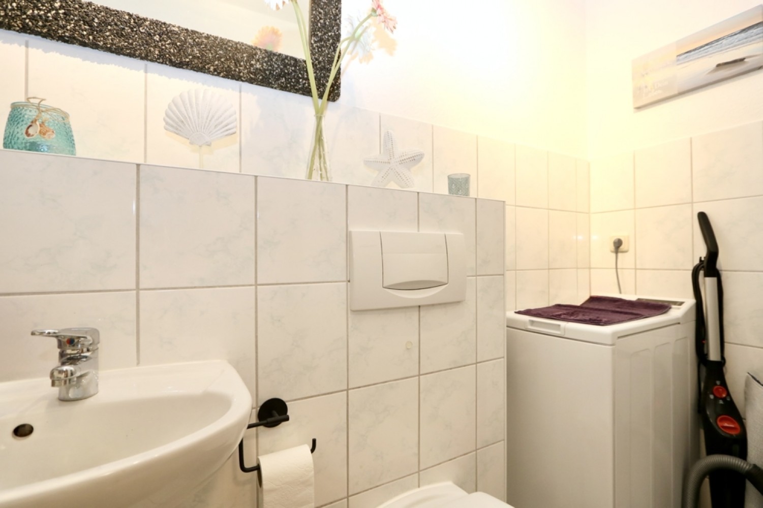 Die Waschmaschine ist im Gäste-WC im Erdgeschoss untergebracht.