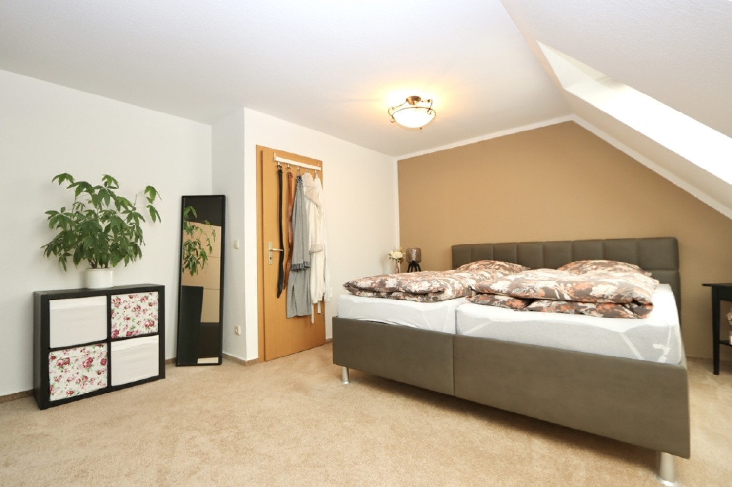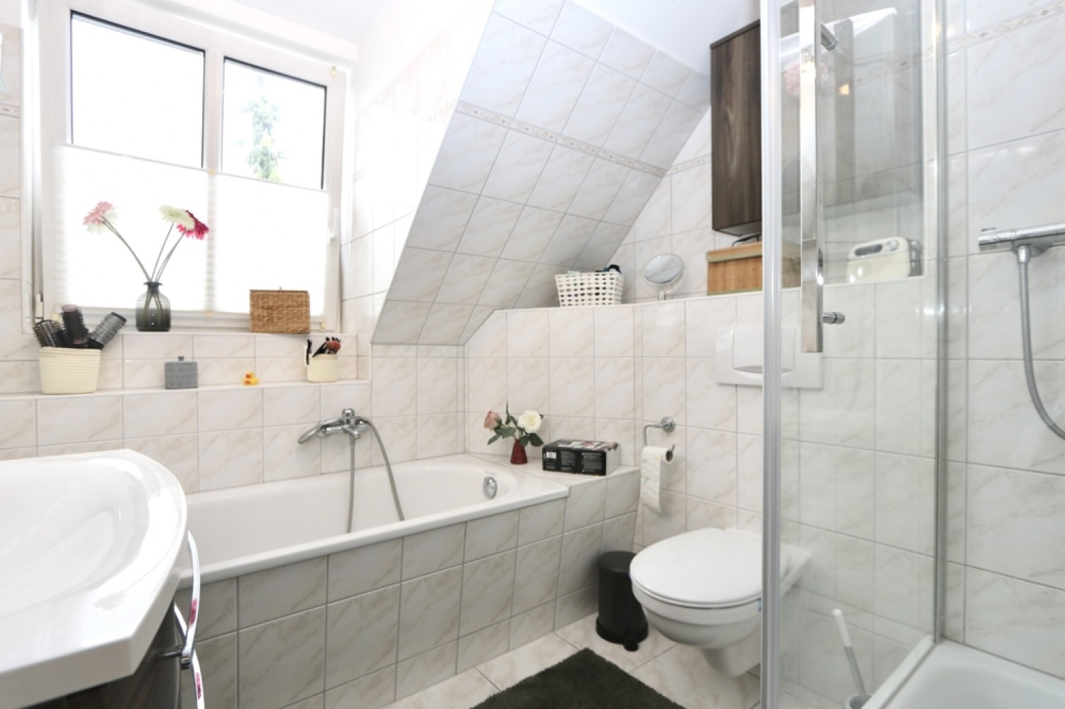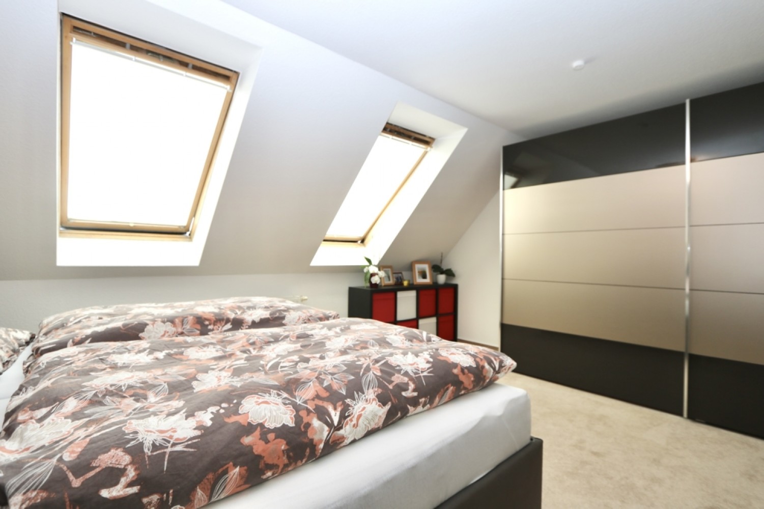 Im Dachgeschoss erwarten Sie zwei freundliche Schlafzimmer sowie ein Tageslicht-Wannebad für den täglichen Komfort.