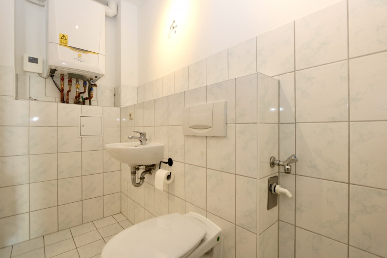 Die Waschmaschine ist im Gäste-WC im Erdgeschoss untergebracht.