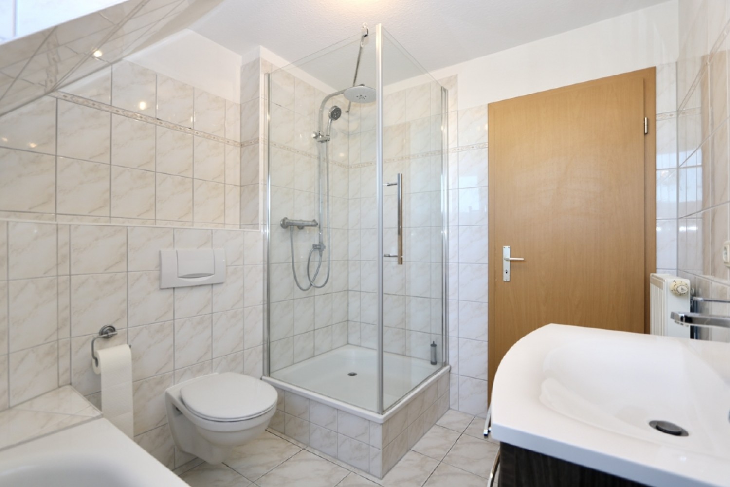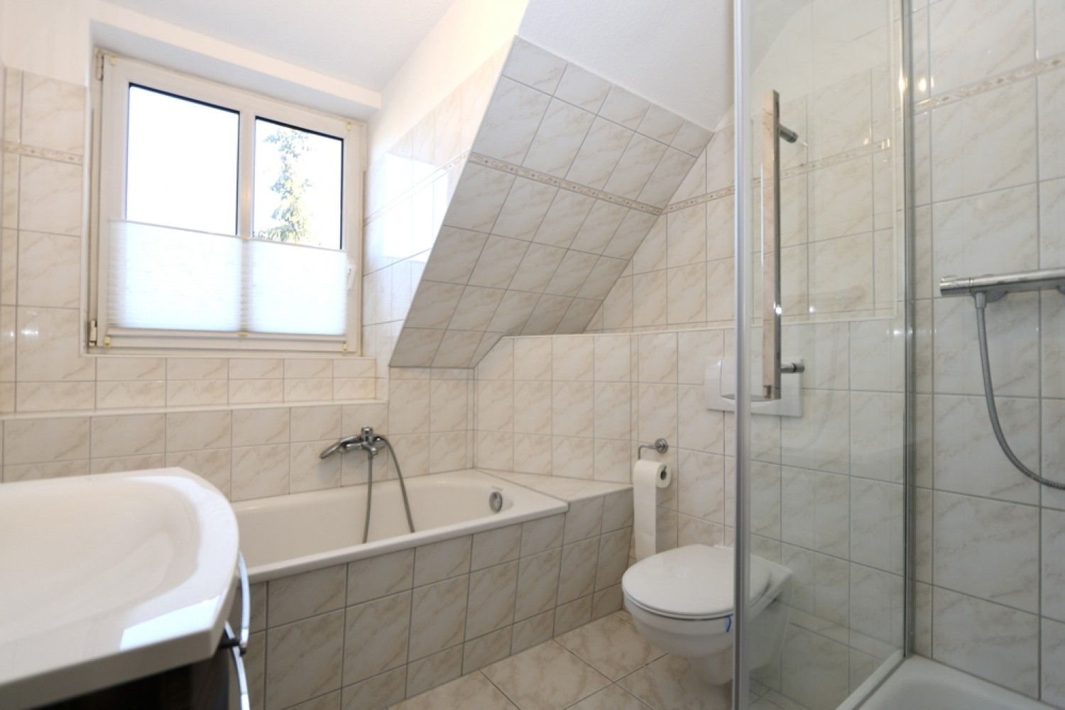 Im Dachgeschoss erwarten Sie zwei freundliche Schlafzimmer sowie ein Tageslicht-Wannebad für den täglichen Komfort.