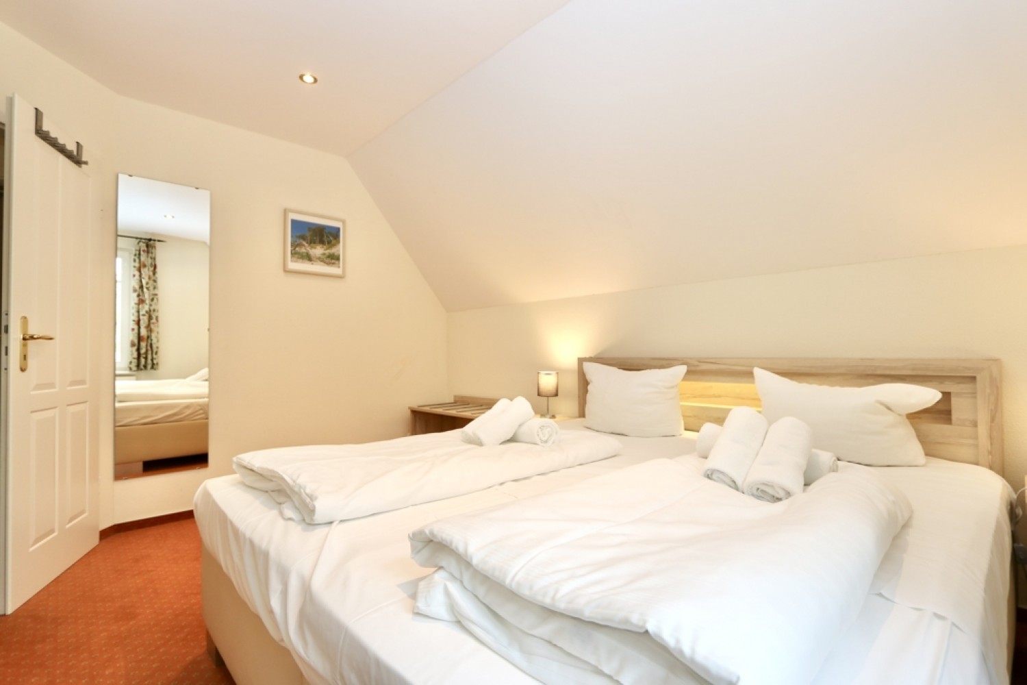 Insgesamt stehen Ihnen vier Schlafzimmer zur Verfügung, sodass bis zu zehn Personen komfortabel untergebracht werden können.