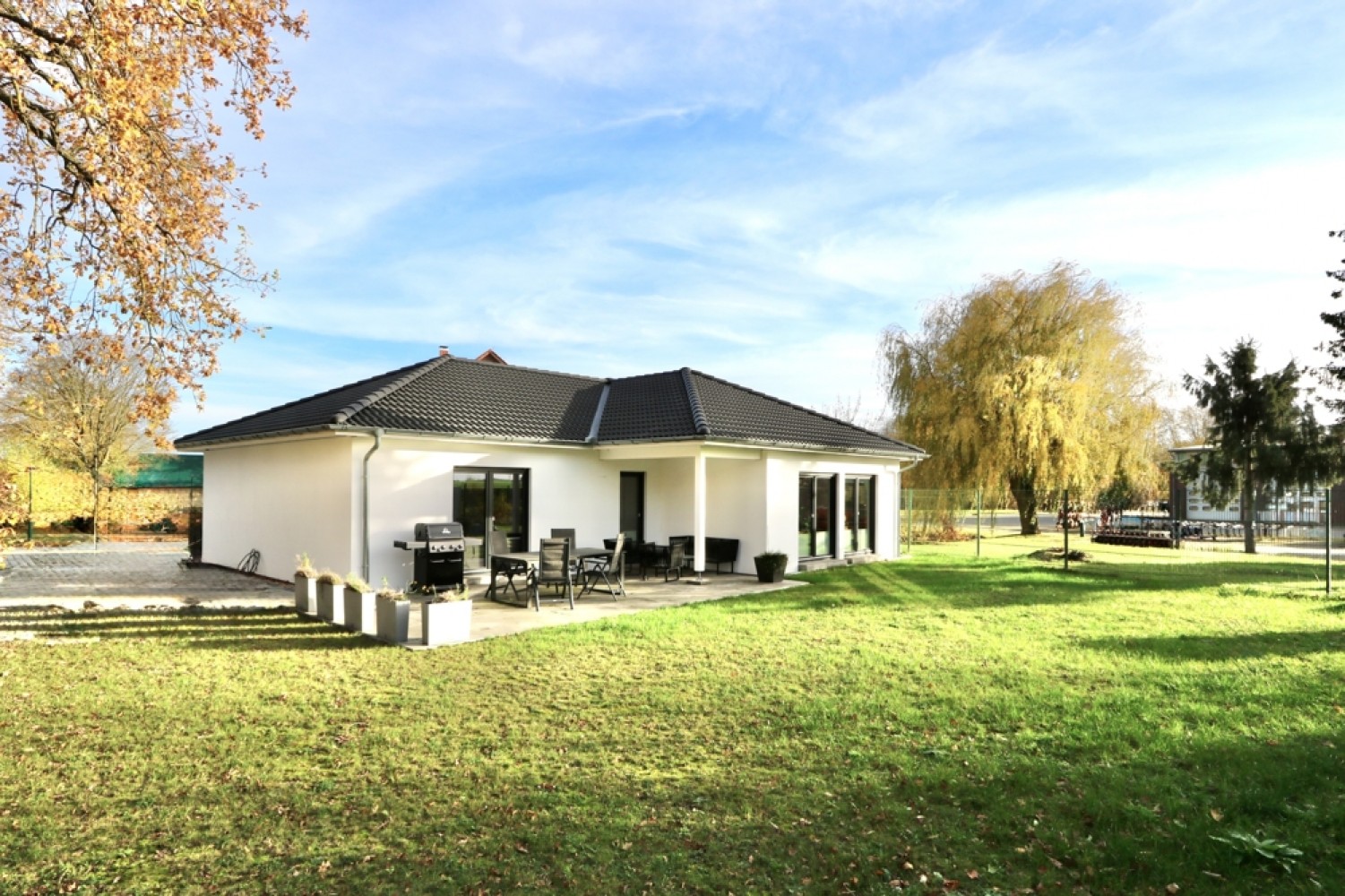 Insgesamt präsentiert sich der Bungalow als modernes, energieeffizientes und zukunftssicheres Zuhause mit einer Ausstattung, die sowohl funktional als auch komfortabel ist.