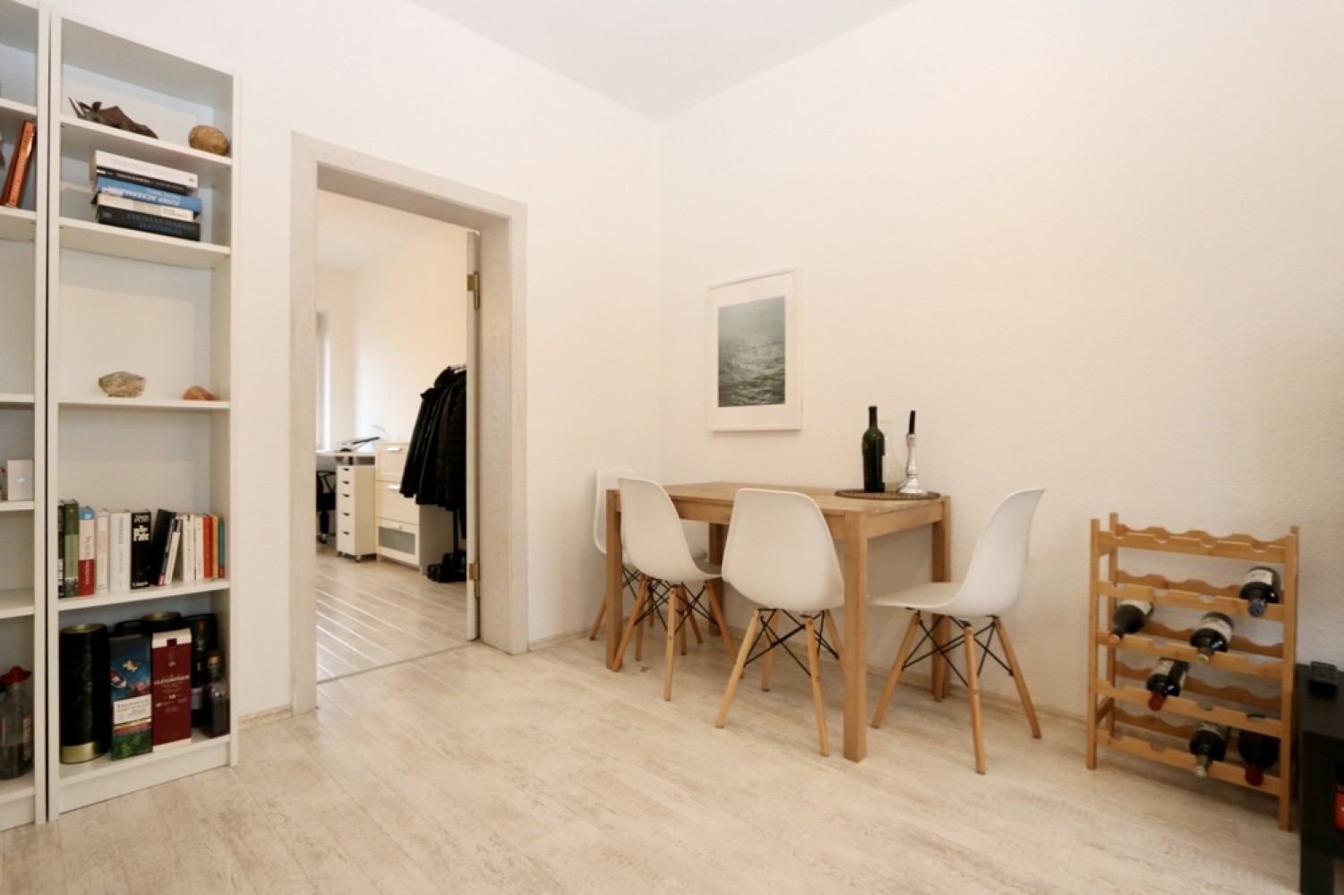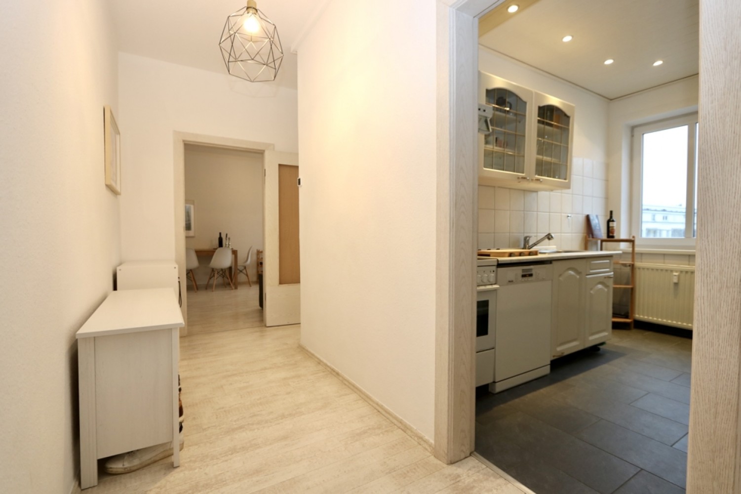 In den Wohnräumen sowie im Flur wurde Laminat verlegt.