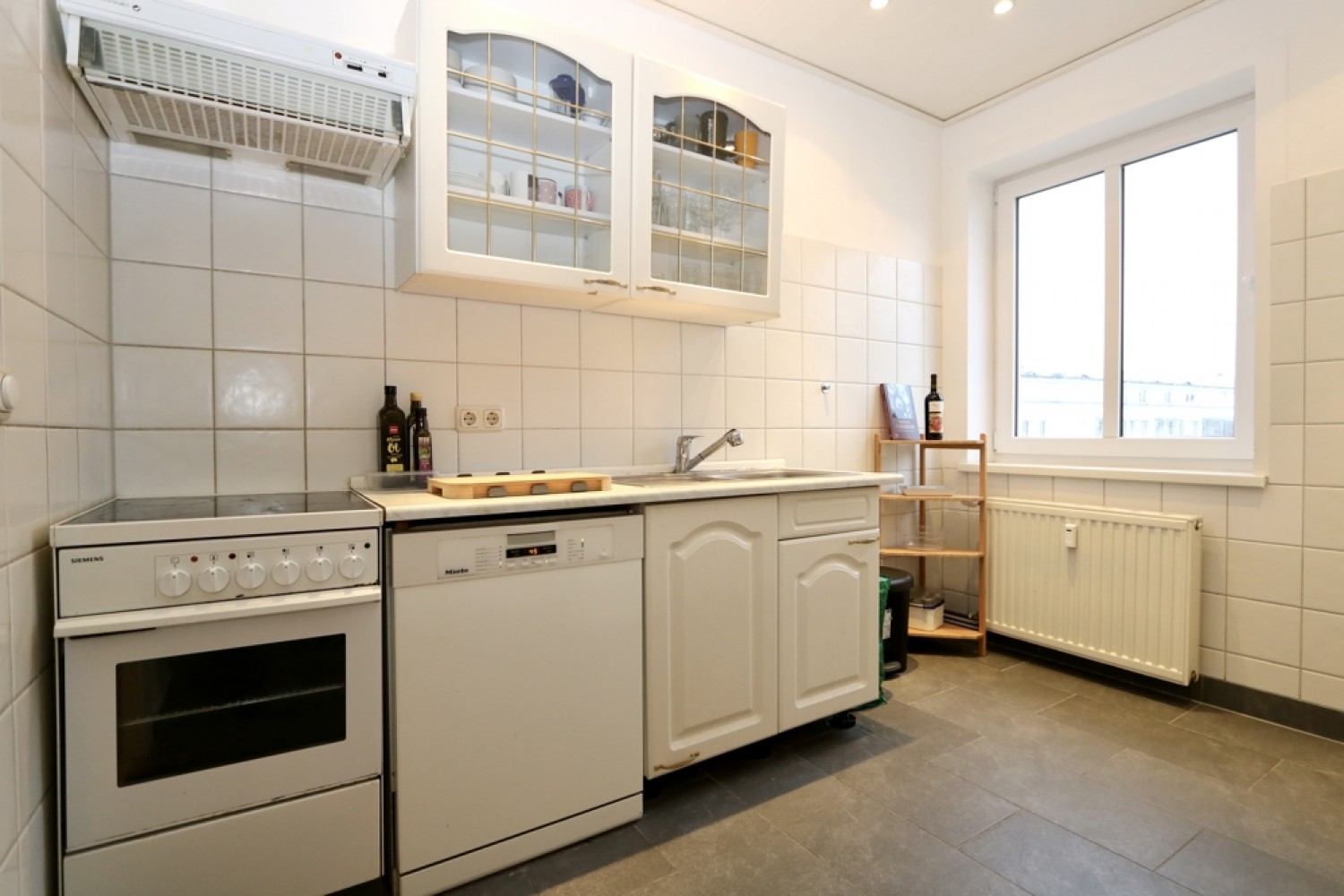 Die Küche sowie das Tageslicht-Wannenbad wurden mit Fliesen ausgestattet.