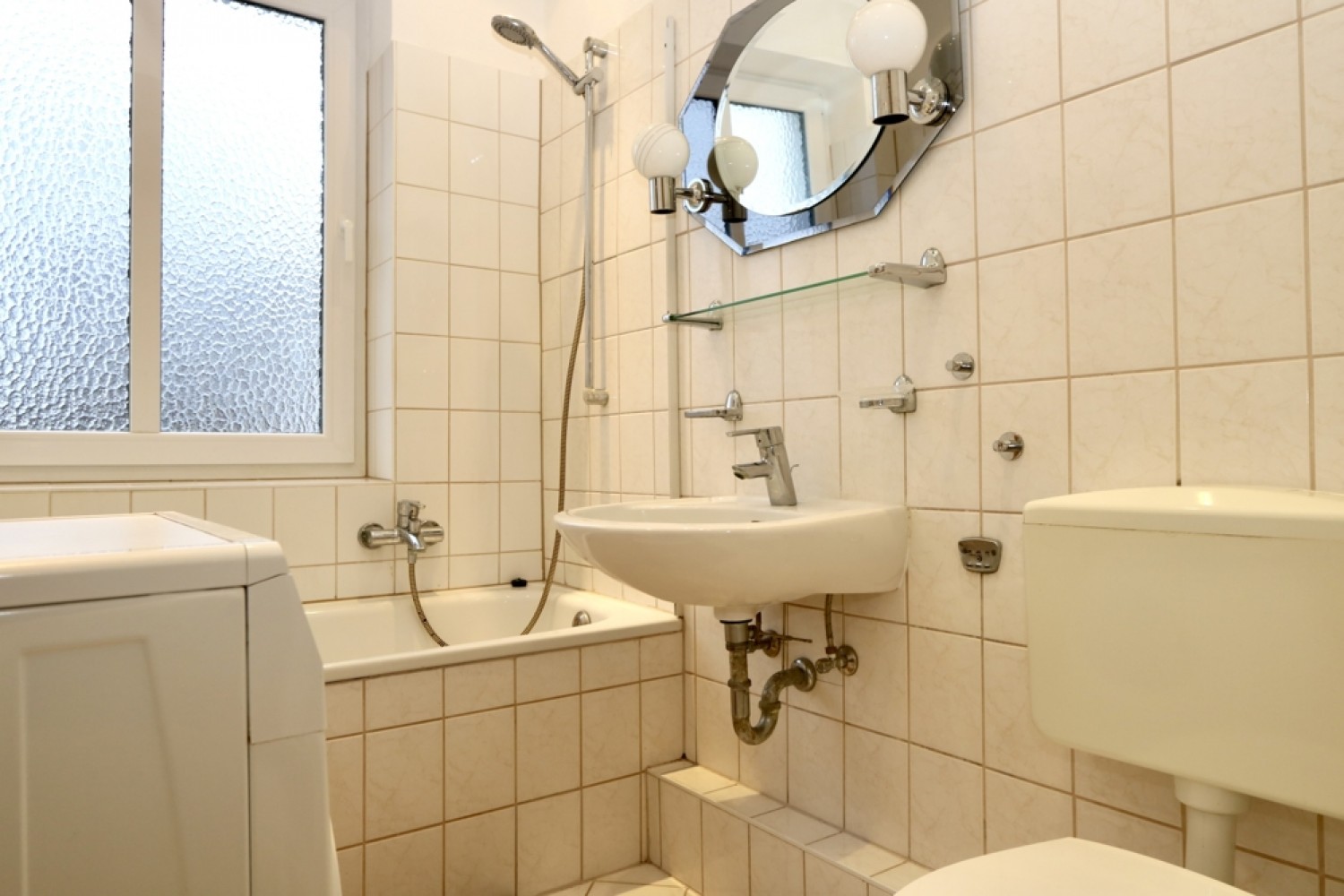Ein Waschmaschinenanschluss befindet sich sowohl im Badezimmer, als auch in der Küche.